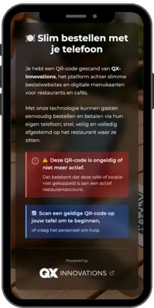 Geen app download nodig. Gast scant de QR code, bestelt en rekent direct online af, zodat je geen nepbestellingen krijgt.